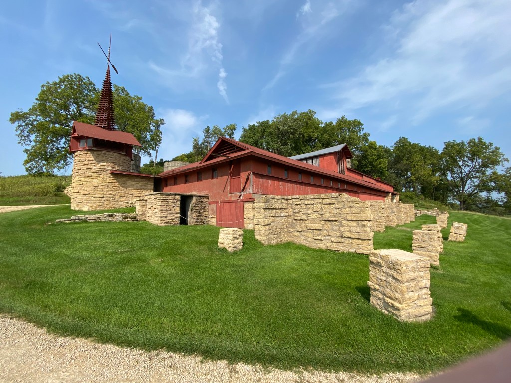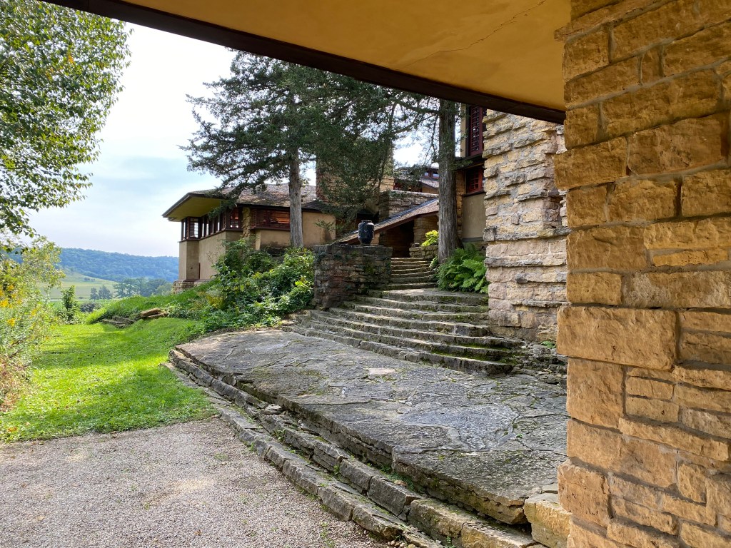 Taliesin was Wright’s life-long home until his death in 1959.  It was a working farm as well as an architecture school. The property was named a UNESCO World Heritage site in 2019. The landscape around Taliesin features green hills and valleys. Wright’s family, the Lloyd Jones, lived in this area since the mid-1800s.